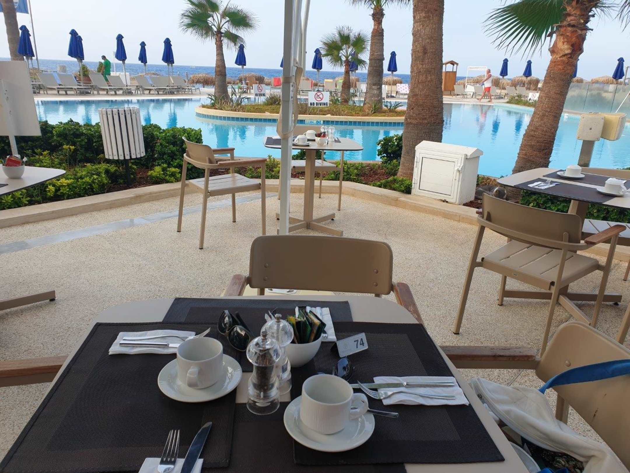 Frühstück am Pool am Hauptgebäude