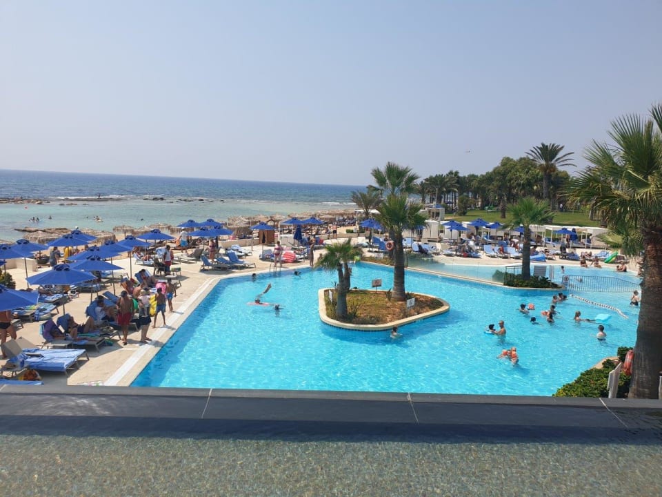 AusblickPool am Hauptgebäude und Blick auf den Strand