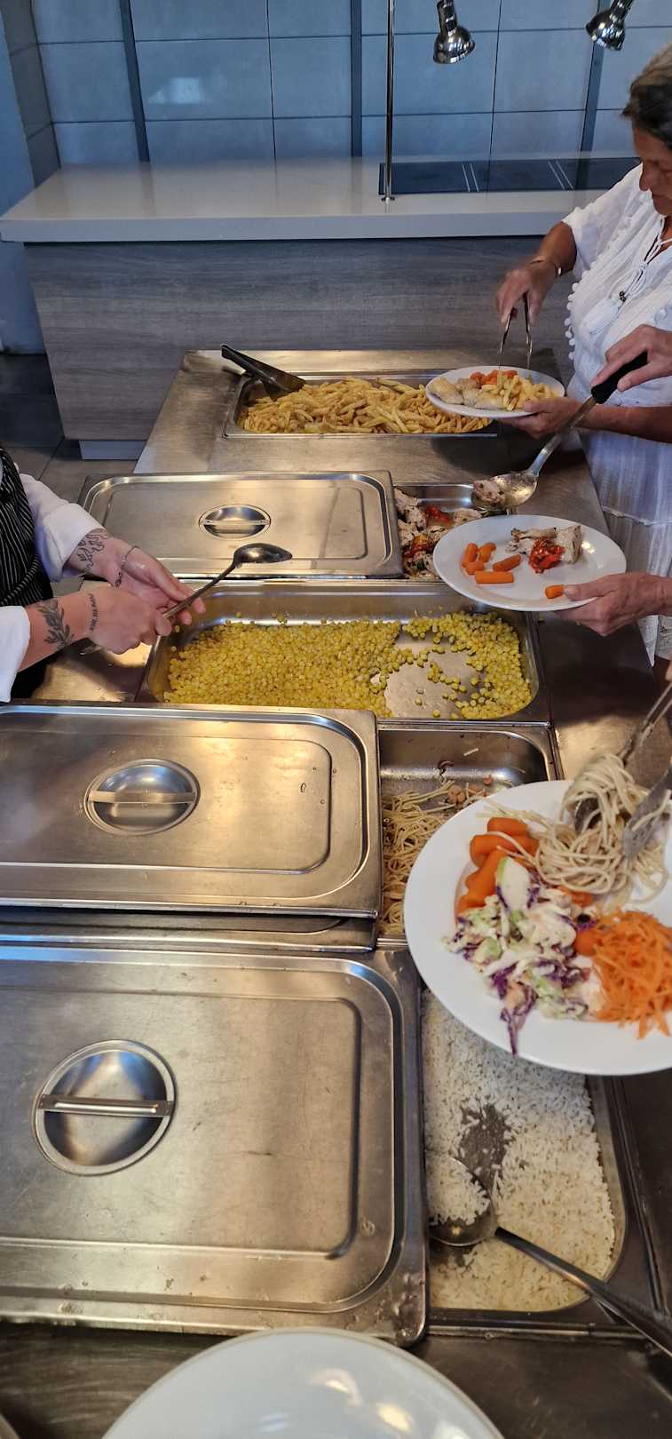 GastroKeine eigene Küche. Alles wird lauwarm in Blechschalen angeliefert.Keine Beschriftung und immer das Gleiche.