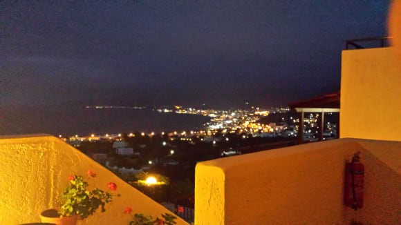 AusblickBlick am Abend von der Terrasse auf den Ort und das Meer.