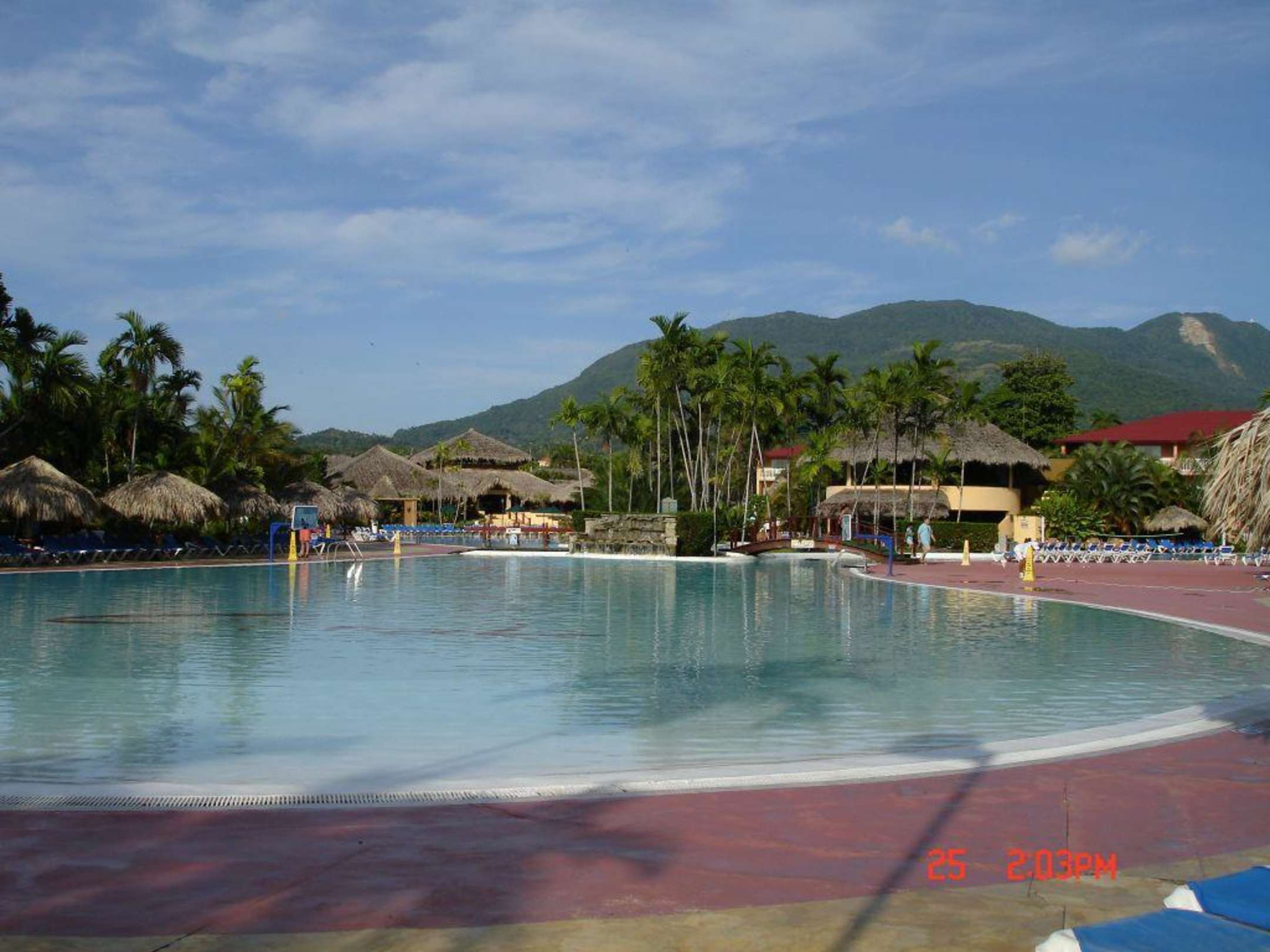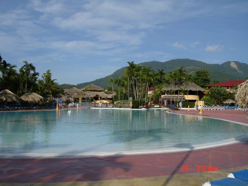 Teilansicht des riesigen Pools. Das Gebäude rechts ist die Poolbar, darüber befindet sich das Pasta House und hinteren Gebäude Links befindet sich die Lobby