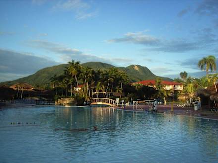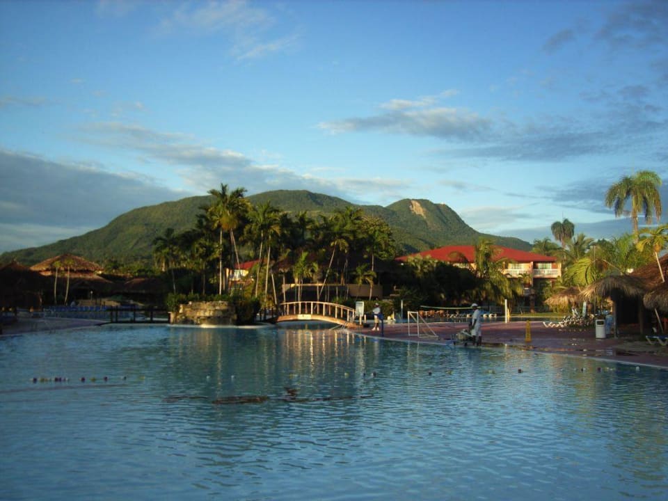 MorgensMorgens um 7:00 Uhr. Blick auf den Pool und im Hintergrund den Berg Isabel de Torres.