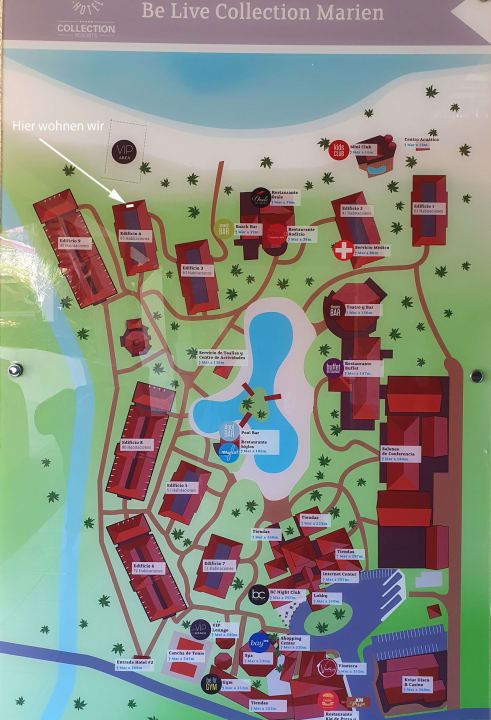 SonstigesKarte mit Lage der einzelnen Wohnblocks, des Pools und der Restaurants