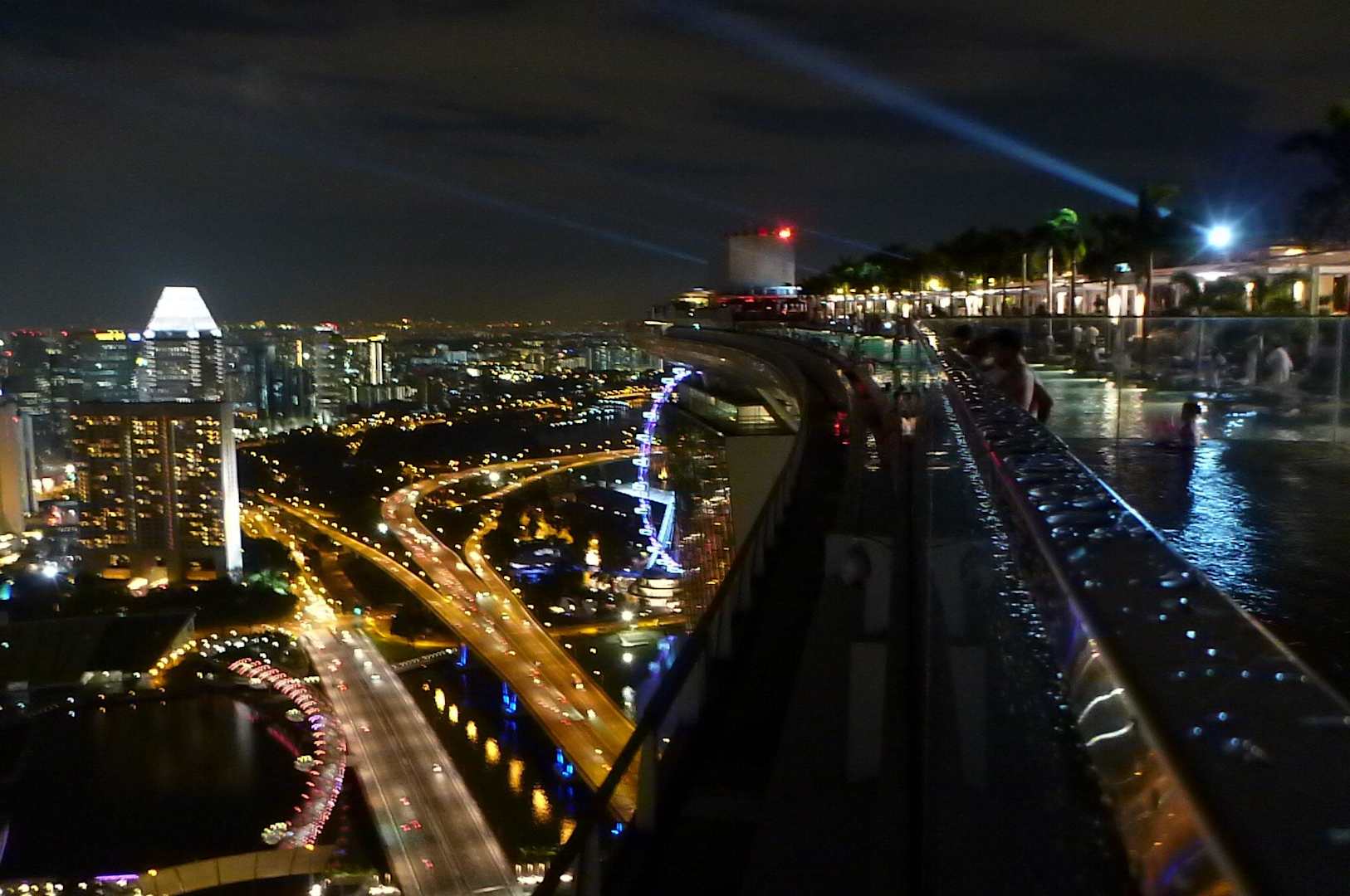 Pool und Singapur bei Nacht