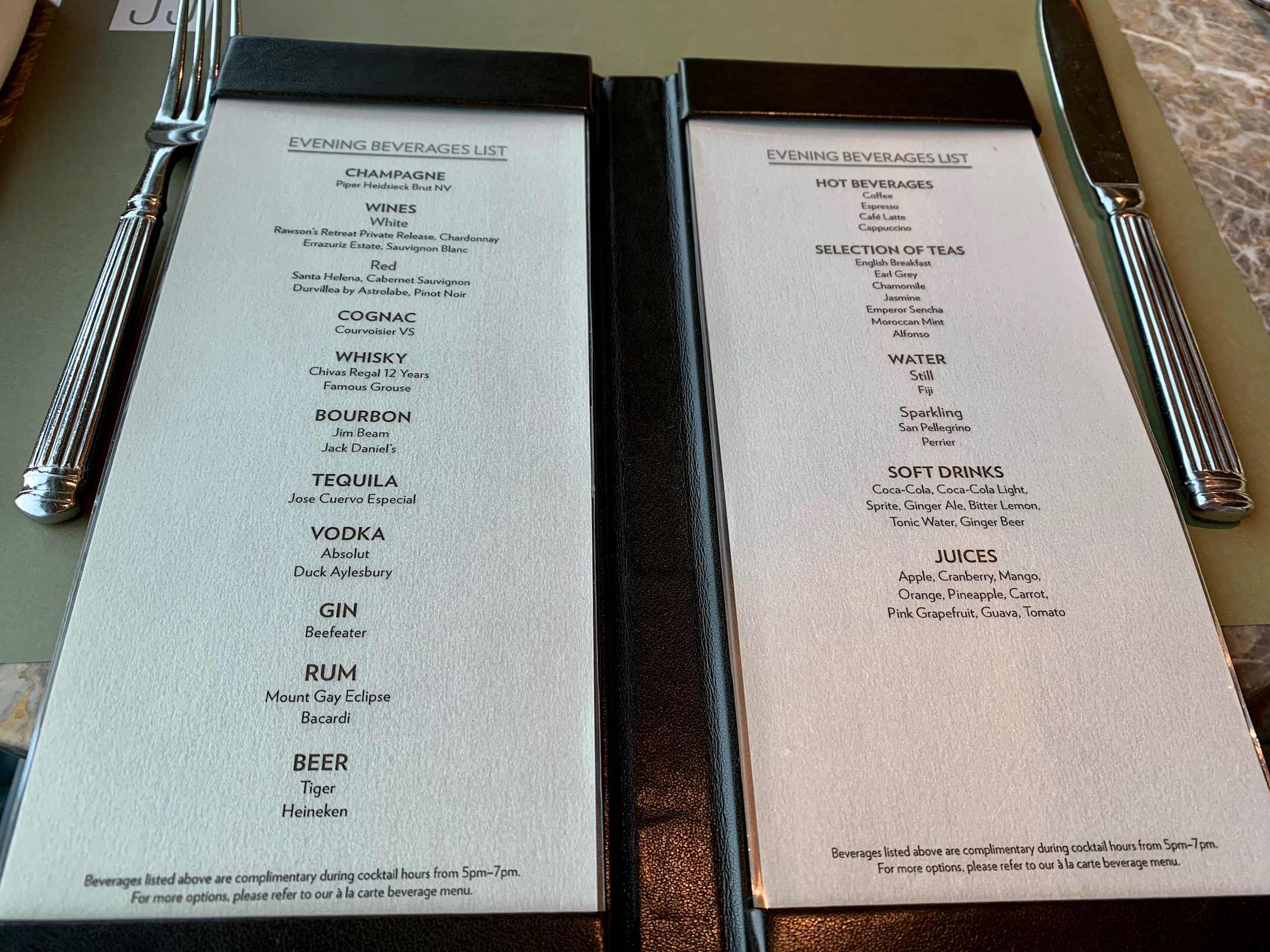 Diese Getränke sind alle von 17.00 - 19.00 Uhr enthalten, wenn man ein Clubzimmer gebucht hat.