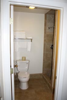 Badezimmer, rechts Dusche und Waschbecken