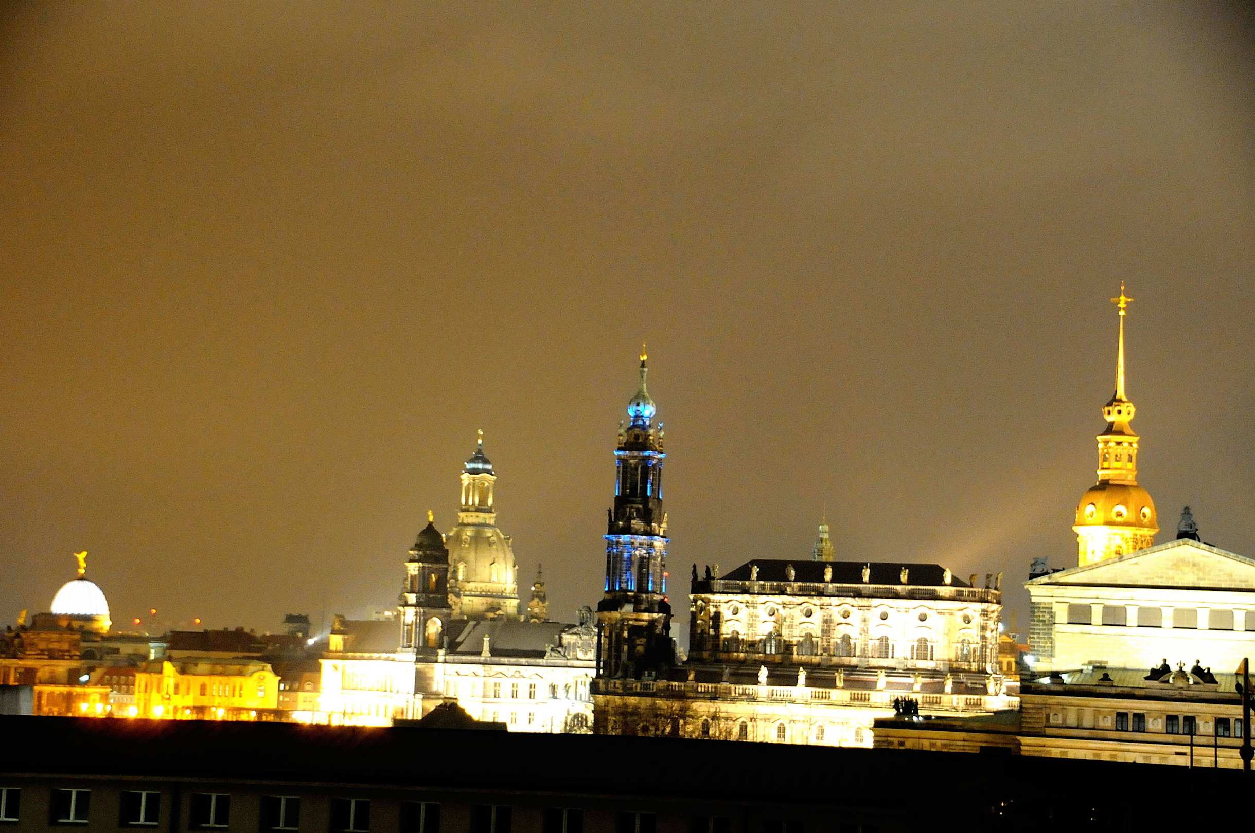 Dresdens Altstadt abends vom Zimmer