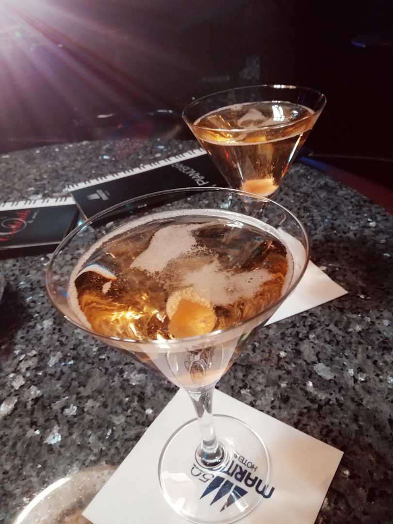 Willkommens-Getränk (Champagner-Cocktail) in der Piano-Bar
