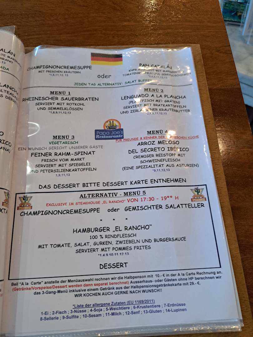 GastroMenüauswahl fürs Abendessen.. Spinat ? Ernsthaft, das kann ich auch zu Hause essen, dafür bucht man doch keine Halbpension !