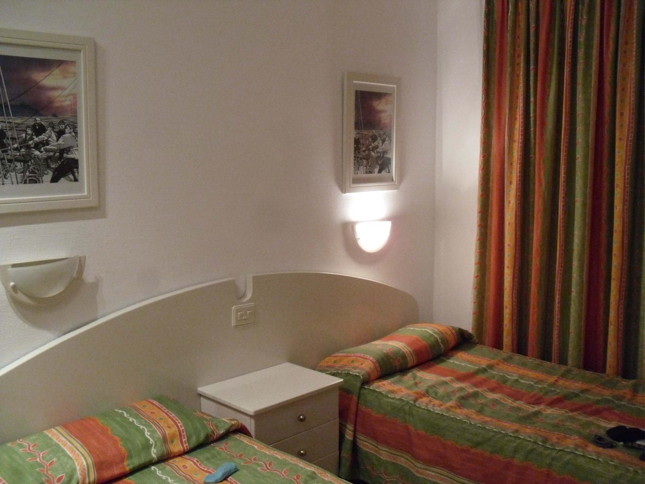 2 Betten, nur eine funktionierende Lampe =(
