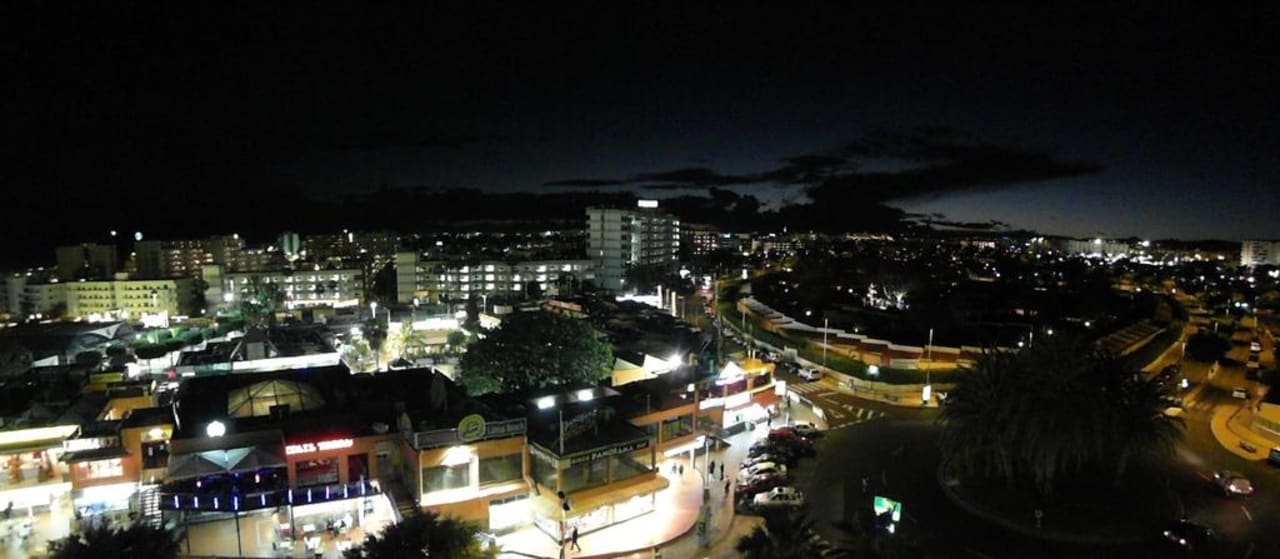 Ausblick bei Nacht von Zimmer 7. EtageAusblick bei Nacht von 7. Etage auf Shopping Center Kashba und Großteil von Playa del Ingles