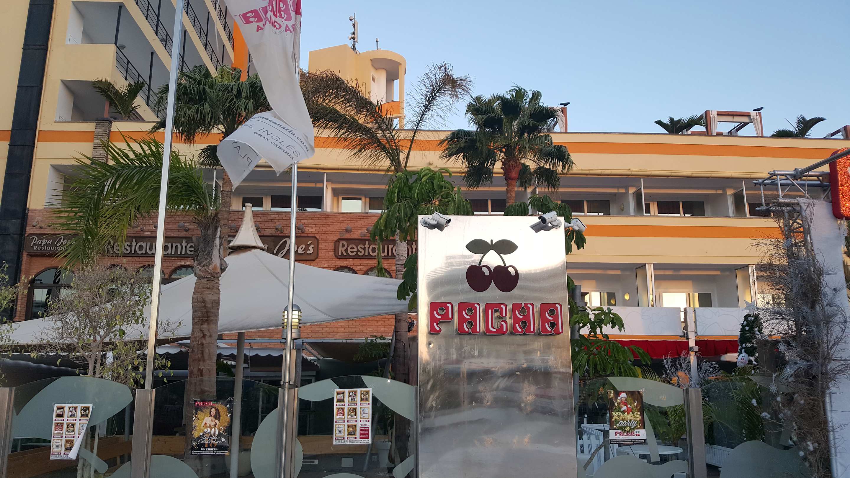 Blick auf die Disco "Pacha" die direkt unter dem Hotel liegt