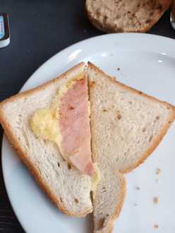 So sieht im Maritm Playa ein Schinken Käse Toast aus.