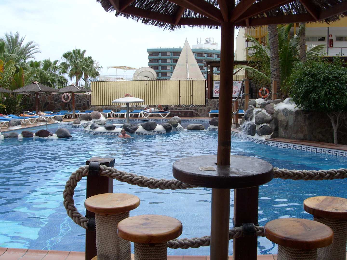 Hotelpool mit Poolbar-Sitz-Palme