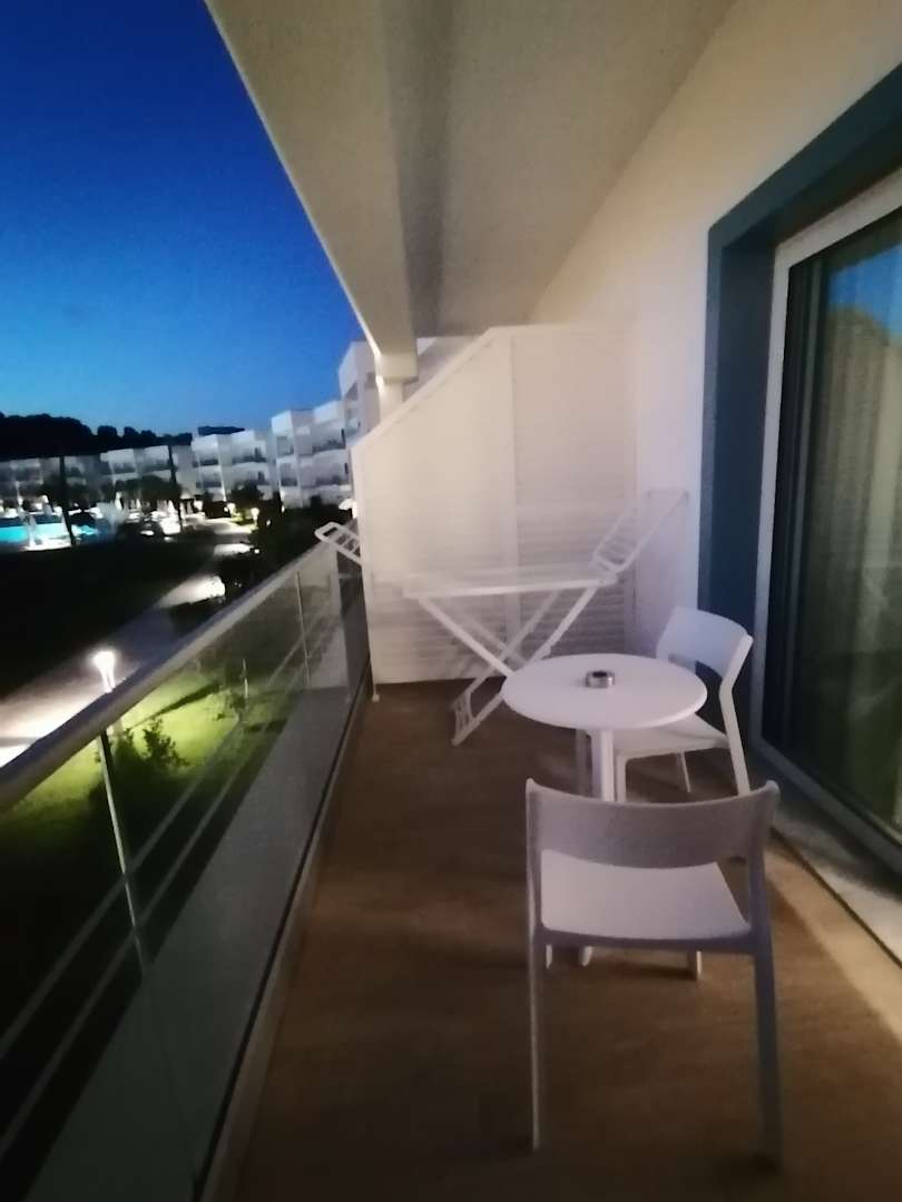 Blick vom Balkon zur Anlage am Abend
