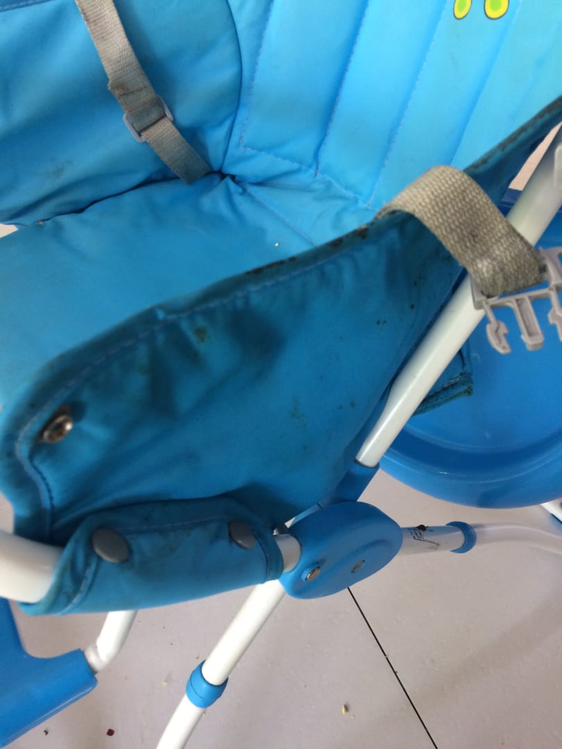 Einer der Hochstühle im Hauptrestaurant. Die schwarzen Punkte sind Schimmel.