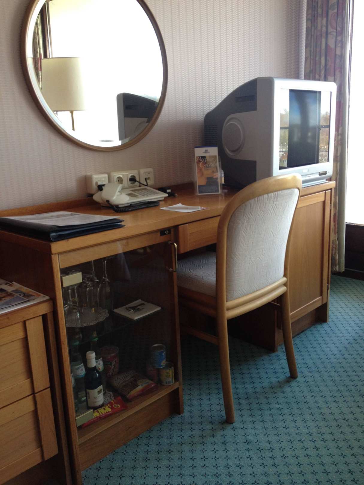 Schreibtisch und TV (schon antiquarisch, aber wir brauchten ihn sowieso nicht).