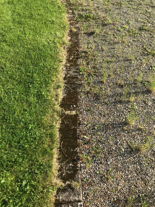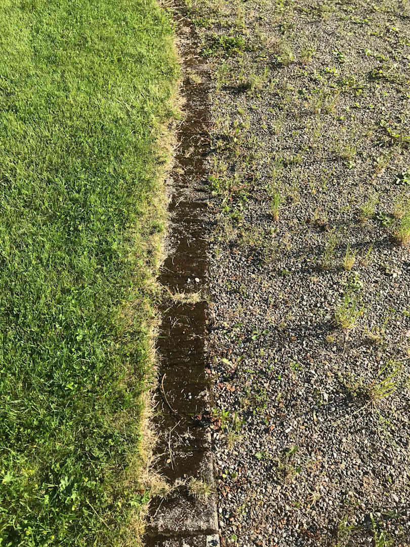 Die Rasenkantensteine total vermoorst, überall Unkraut