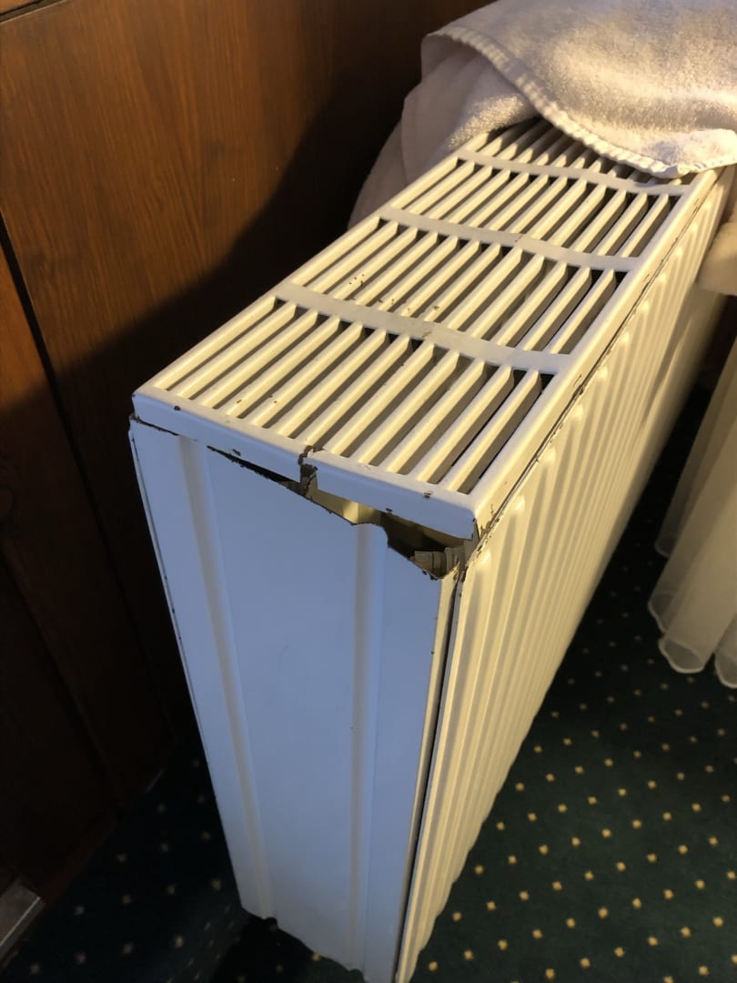 Defekter Heizkörper direkt an der Balkontür. Ich habe mir dadurch eine Hose zerrissen.