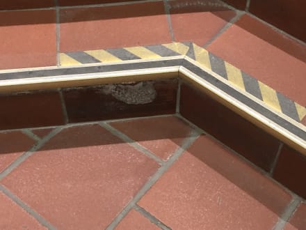 Stufen auf dem Weg zum Fitnessraum. Fliessen sind abgebrochen.