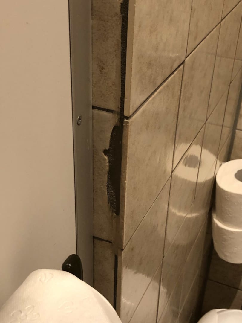 SonstigesÖffentliche Toilette der Damen. Die 70 er 80 er Jahre Fliesen, zum Teil abgeplatzt oder gerissen.
