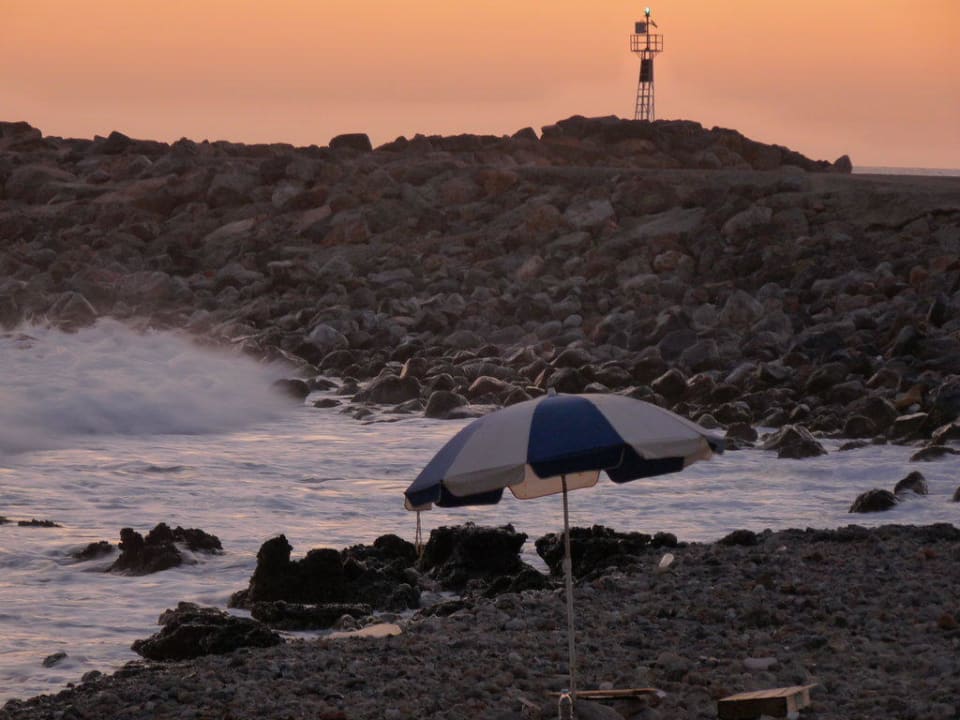 Der Strand mit Hafeneinfahrt im Sonnenaufgang