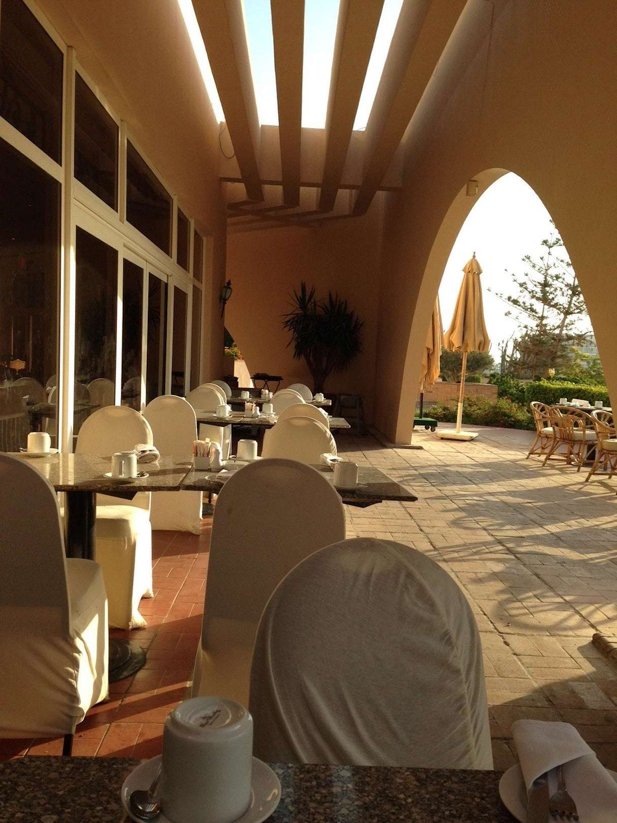Main restaurant terrace at breakfast