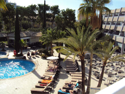 Mit Terrasserechts die Tische, an denen man aber leider nicht frühstücken darf.....unverständlich....dazu besser kein Komentar