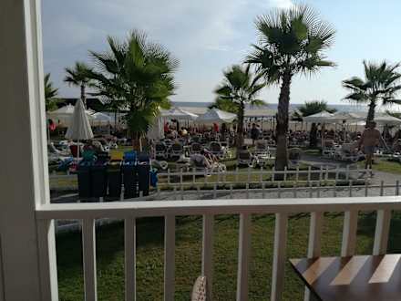 Ausblick von der Strandbar zu den Liegen.