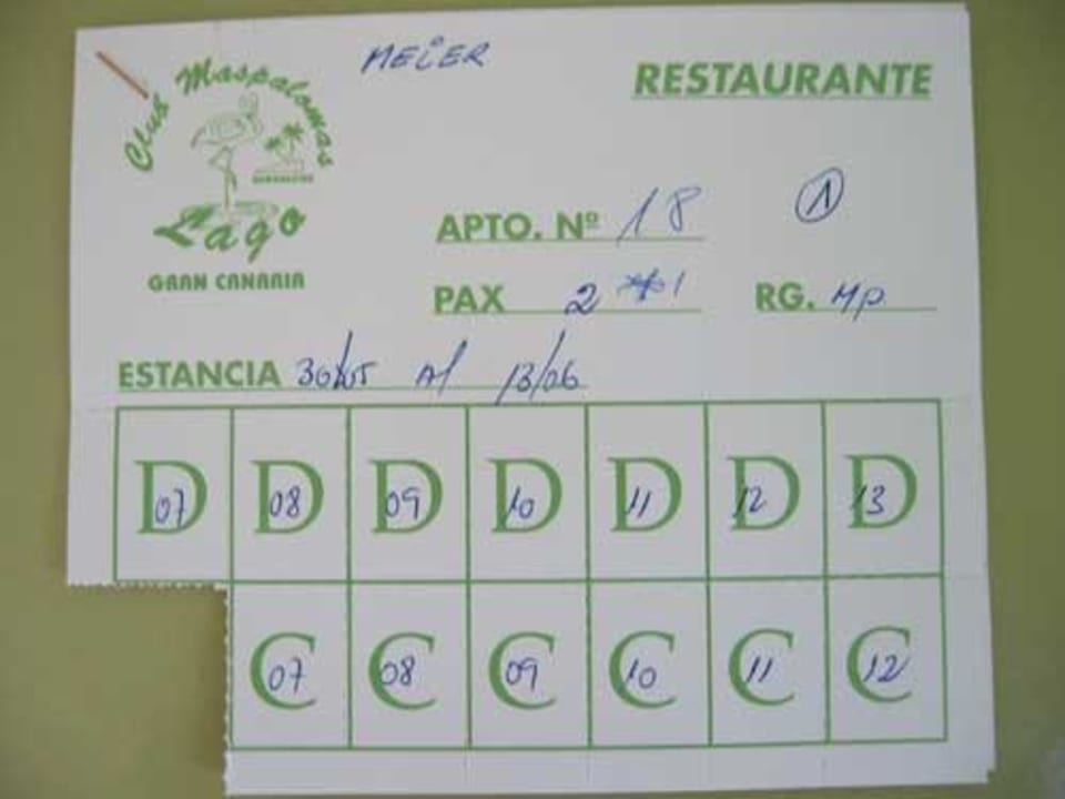 Bei jedem Essen wird der Speisegutscheine kleiner. Das " D" steht für Frühstück, das " C" logischerweise für Dinner ;-). Leider kann man die Gutscheine nicht zum Mittagessen verwenden.