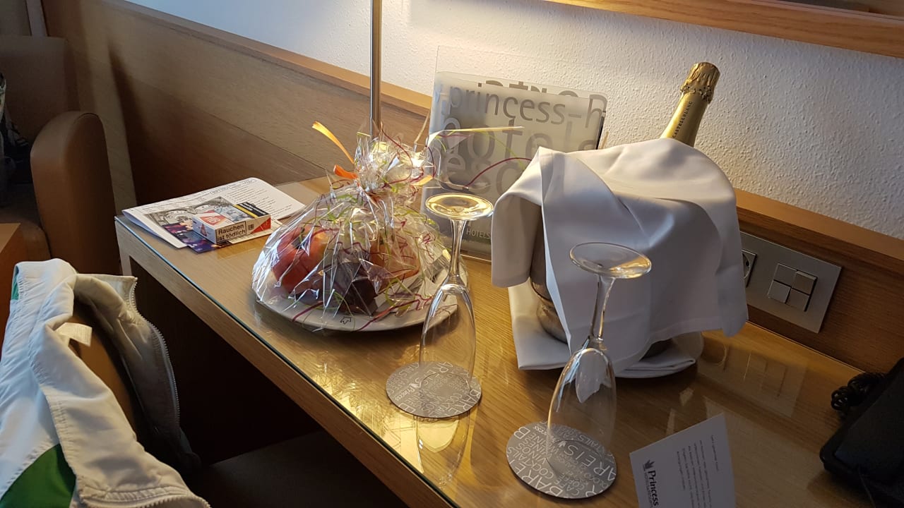 Sekt und Obstteller bei der Ankunft