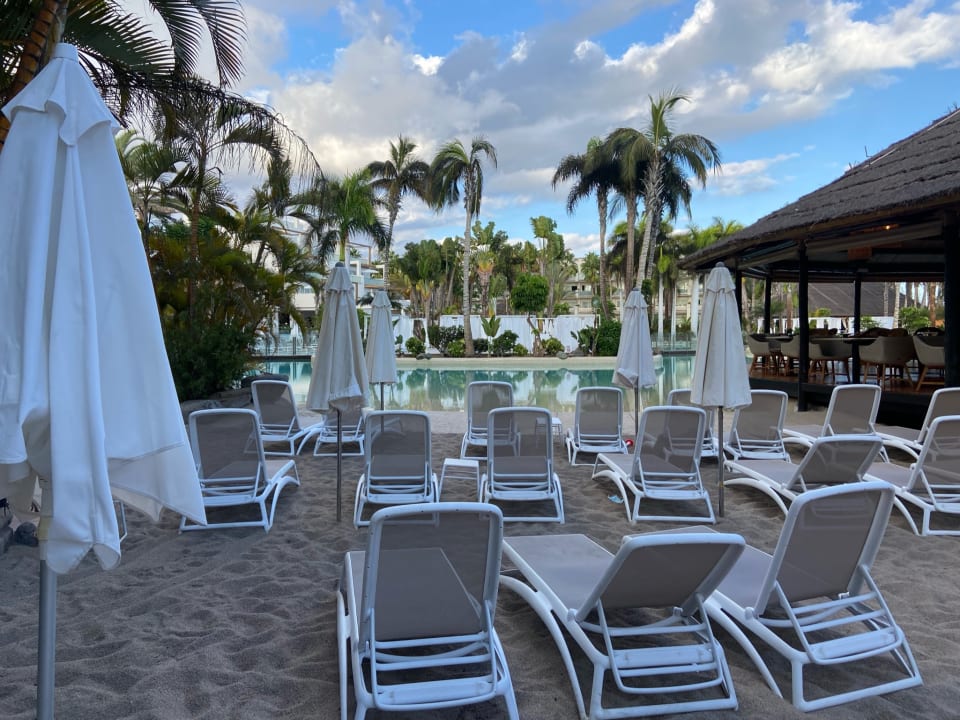 Blick auf Pool und rechts auf die Snackbar Mordisco
