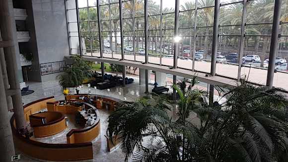 Lobby vom großen Glasaufzug fotografiert