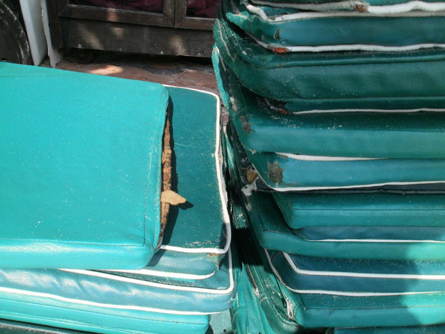 Die sind ausnahmslos ALLE nass gewesen weil es täglich geregnet hat. Niemand hat es für wichtig befunden diese mit den vorhandenen Planen über Nacht abzudecken geschweige denn mal neue anzuschaffen!