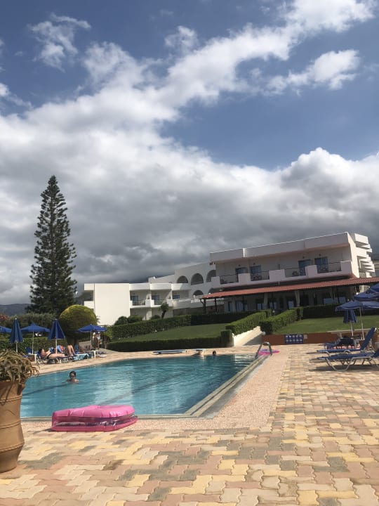 Blick vom Pool zum Hotel