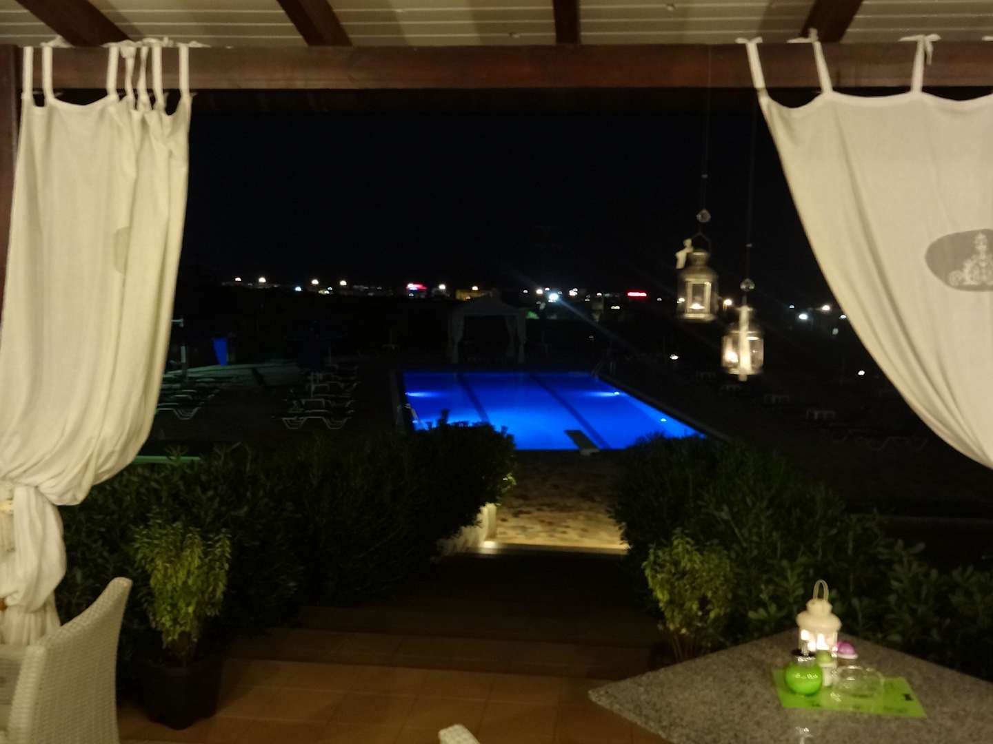Abendlicher Blick auf die Poolanlage
