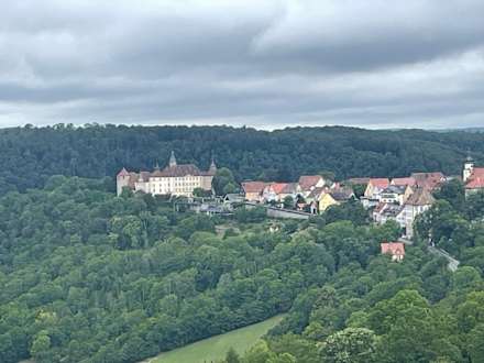 Blick vom Pool zum Schlosslangenburg