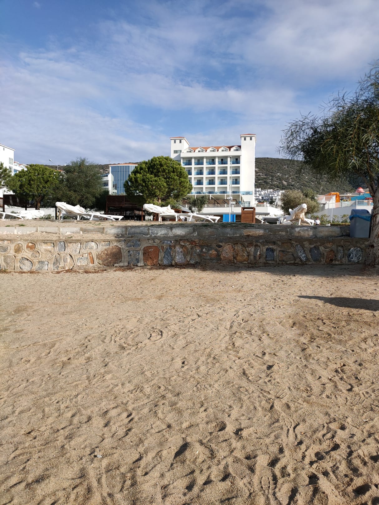 Blick vom Strand auf das Hotel.