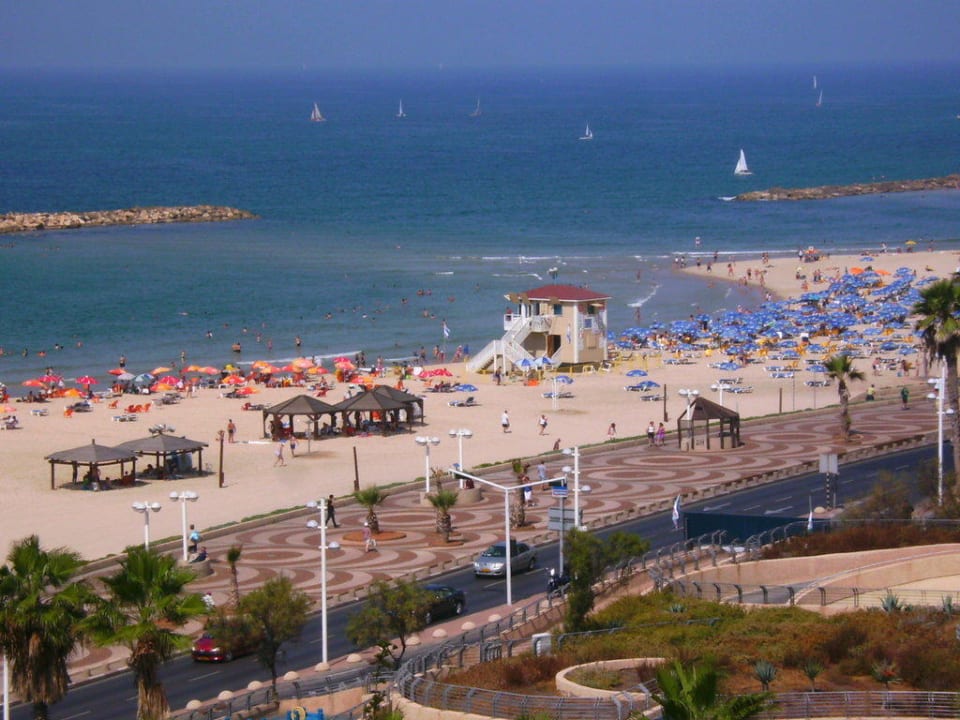 Blick aus dem Hotelzimmer auf den Frishman Beach
