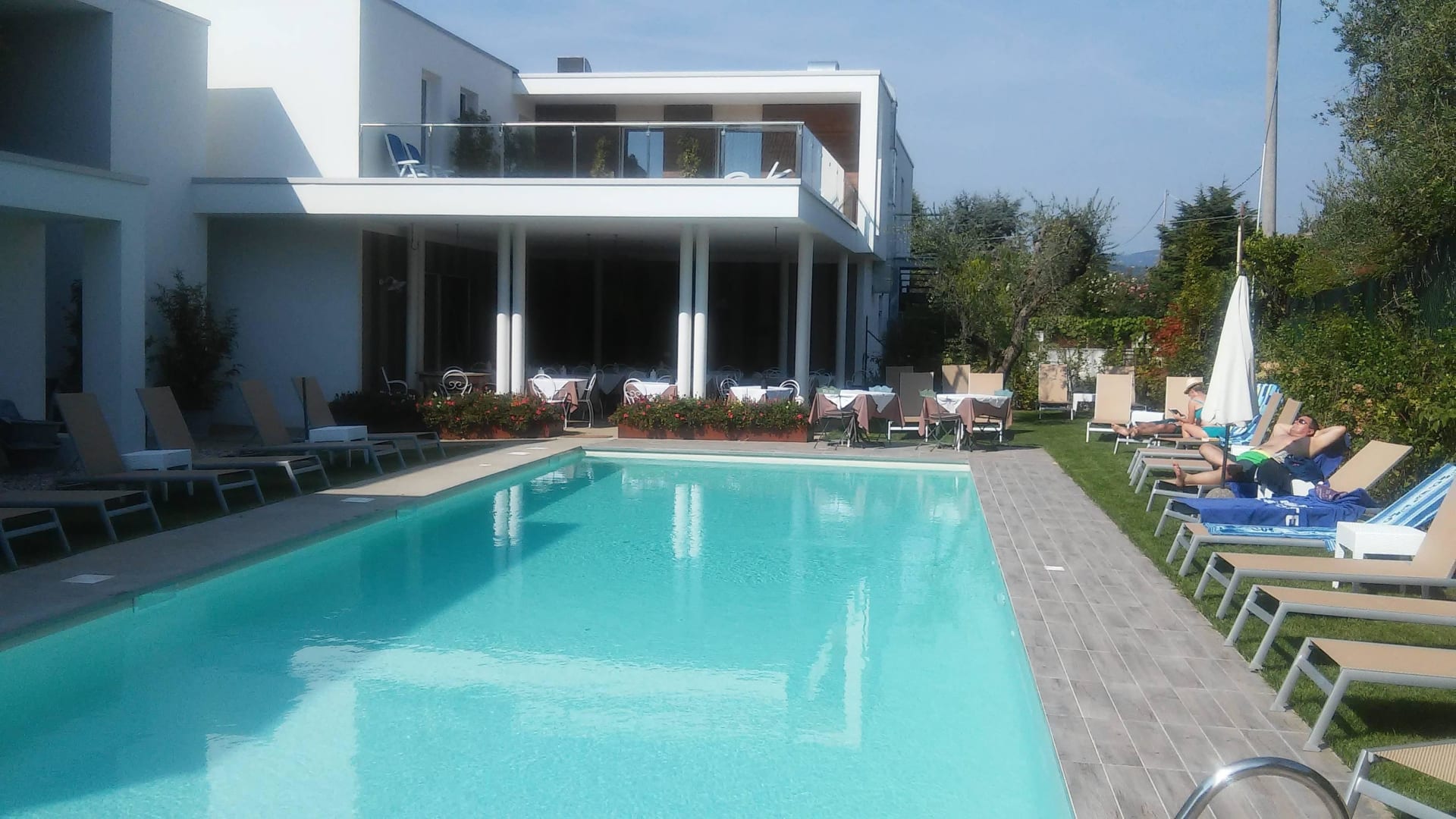 Neuer Poolneuer Pool mit zu unserer Zeit ausreichend Liegen. Im Hintergrund unten die Frühstücksterrasse und oben die "private" Terrasse