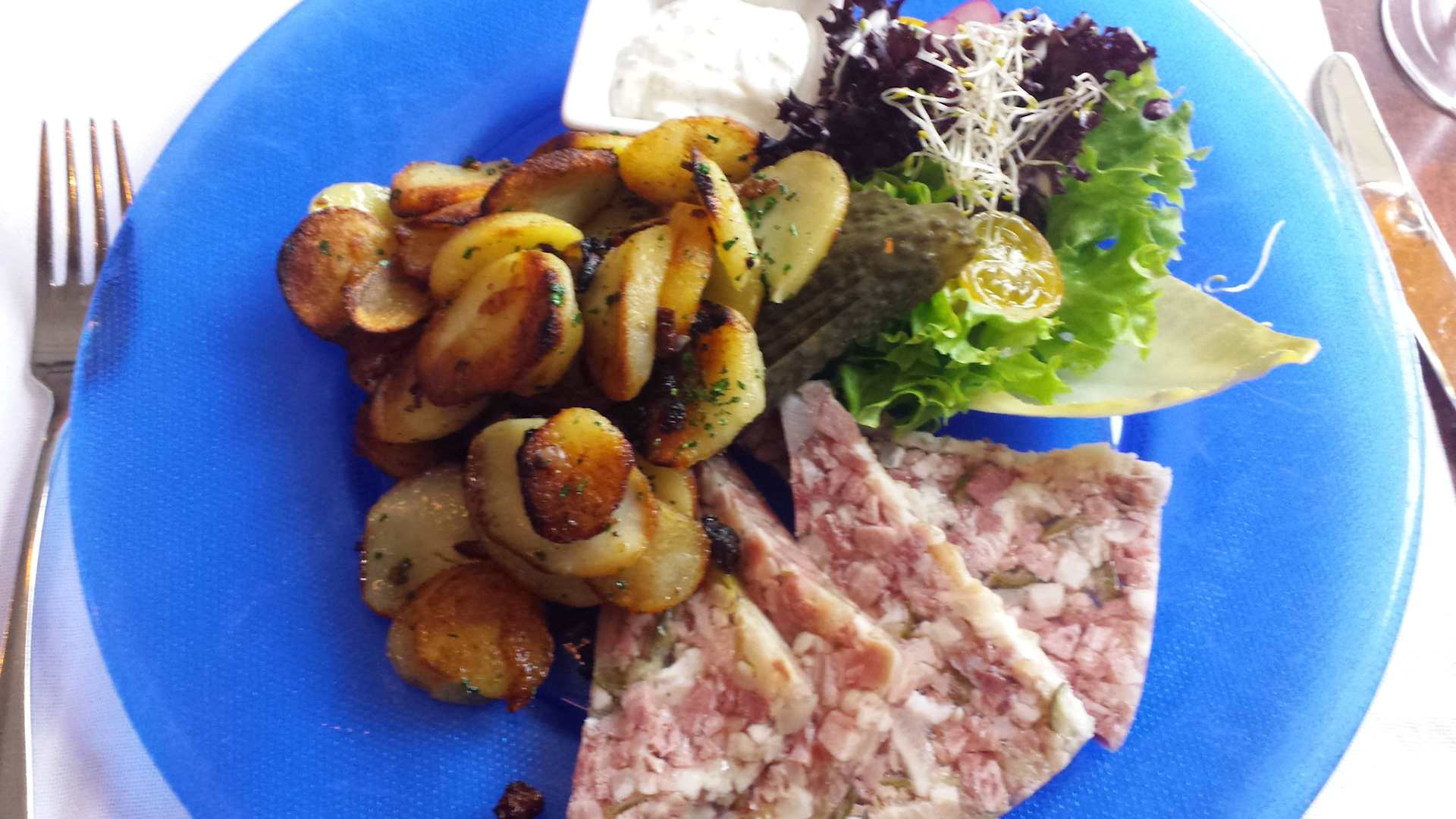 Hausgemachte Eisbeinsülze mit Bratkartoffeln