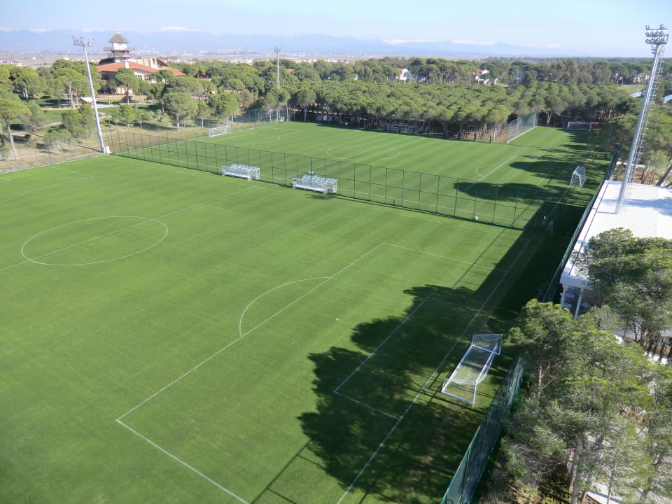 Zwei Felder und seperater Goalkeeper Trainigsecke und kleinen Tribühnen.