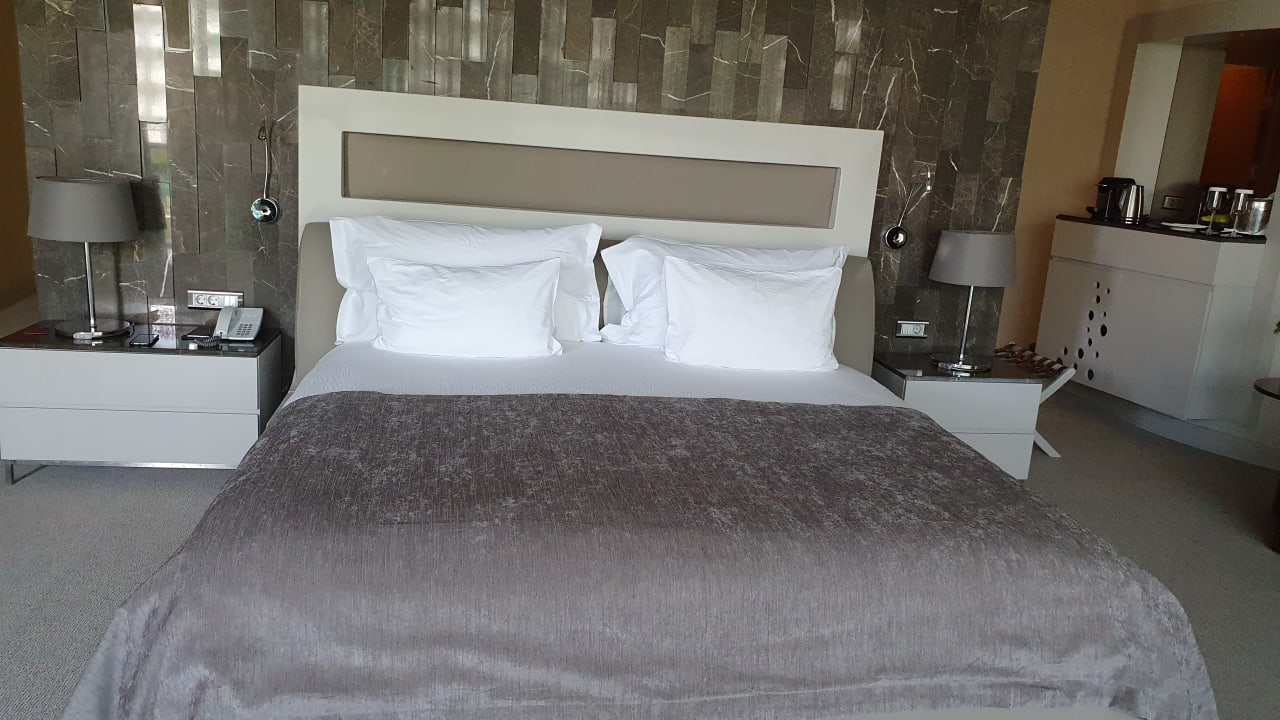 riesiges Zimmer mit einem großen bequemen Doppelbett