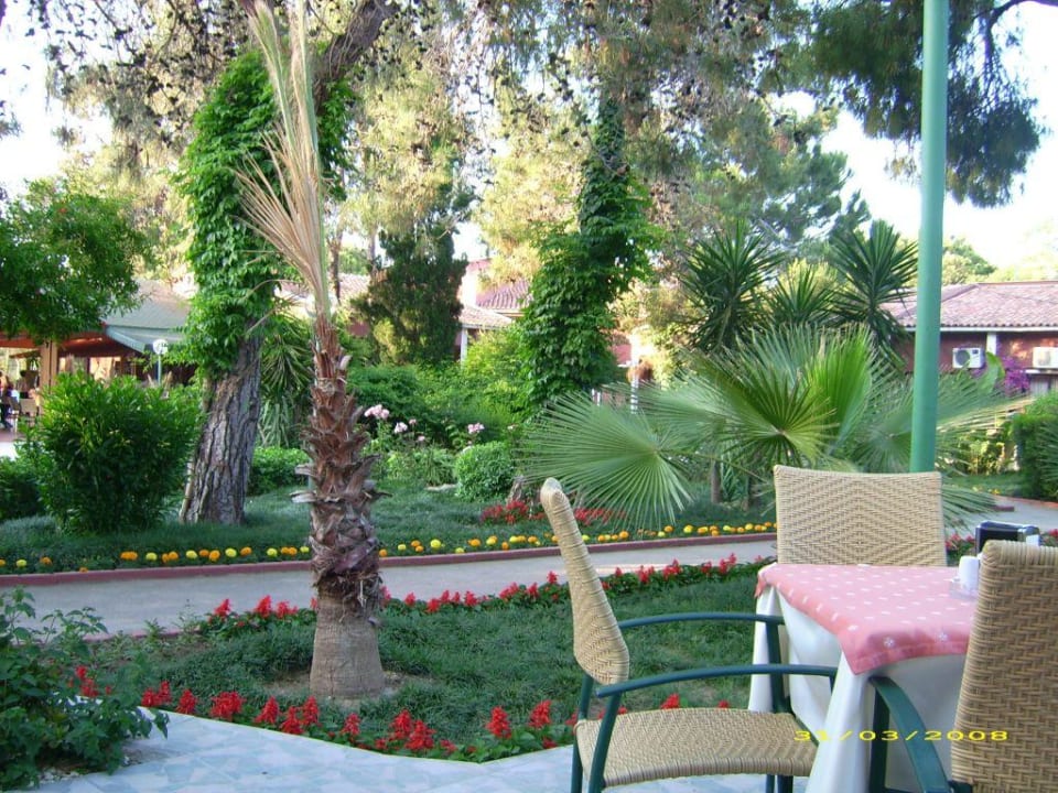 Aussicht vom EssenstischDas sind die Essenstische ein Blick in den wunderschönen Garten mit Palmen,Granatapfelbäumen und Blumen.Einfach wunderschön.