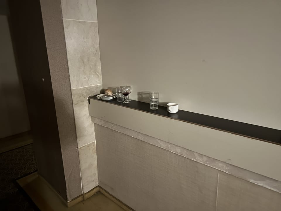 Warum ist sowas niemand vom Hotel peinlich, dieses Geschirr stand knapp 5 Tage an der Stelle. Am Tag laufen da sicher 10 Leute vom Hotel vorbei, kann man da nicht mal zufassen und es beseitigen. Egal ob Putzfrau oder Manager???