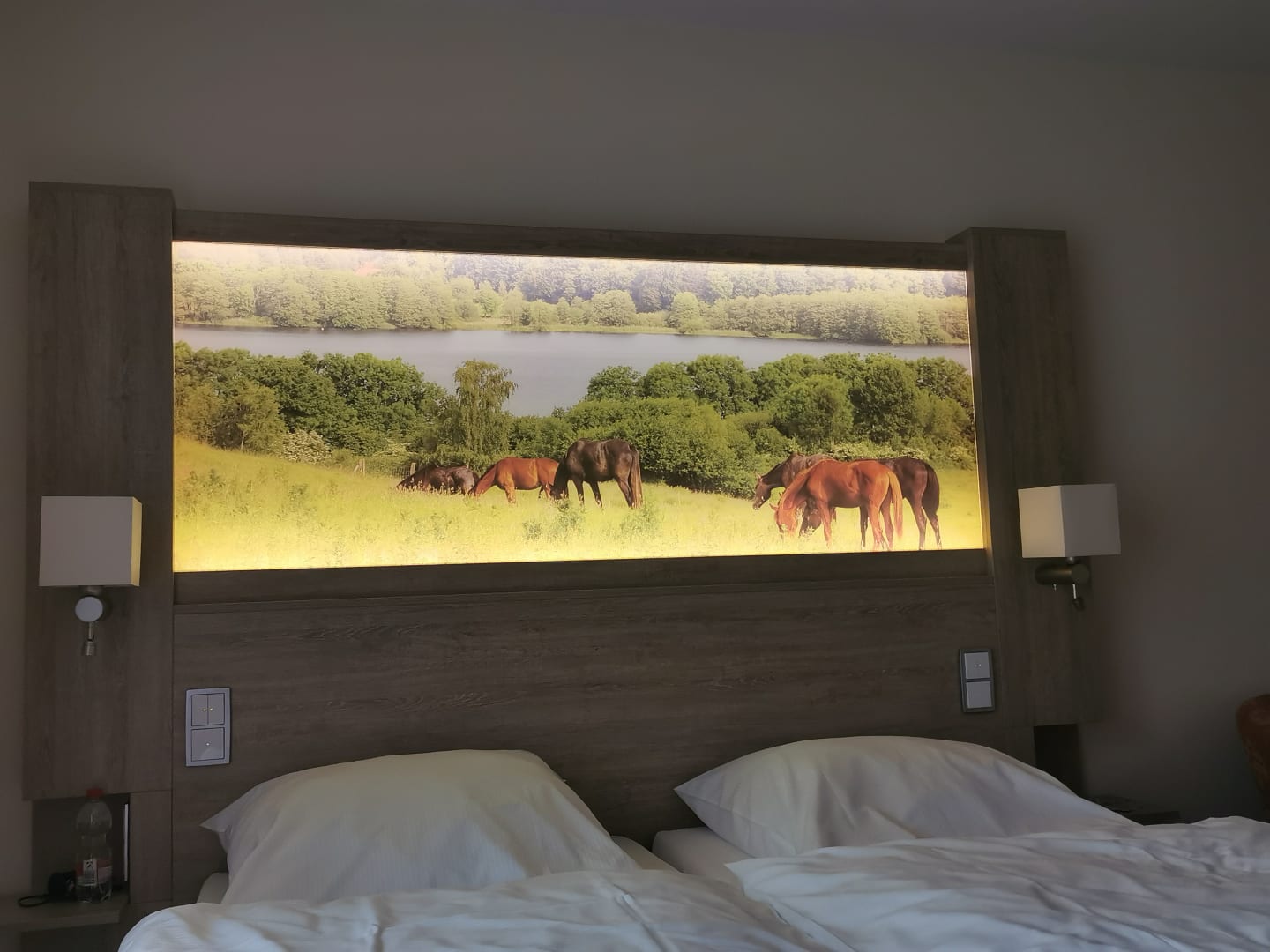 Beleuchtetes Naturfoto über dem Bett