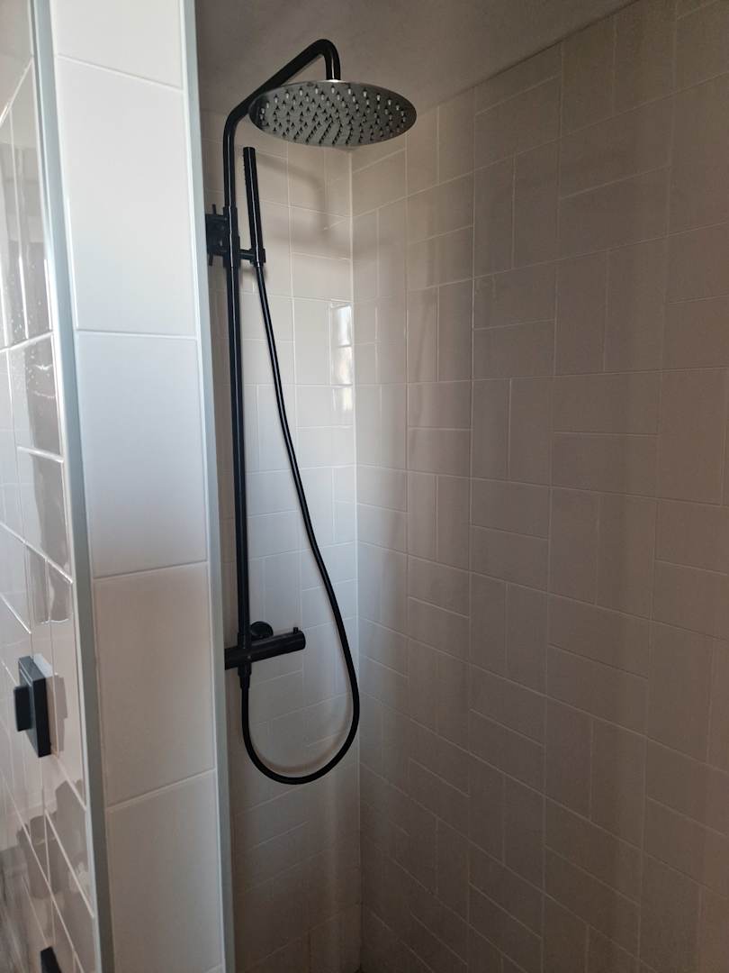 Dusche mit einer Glastür