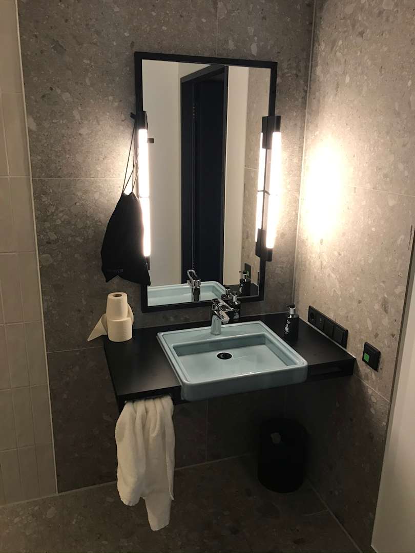 Behindertengerechtes Zimmer 212 - Badezimmer, Ablagen und Haken wären gut