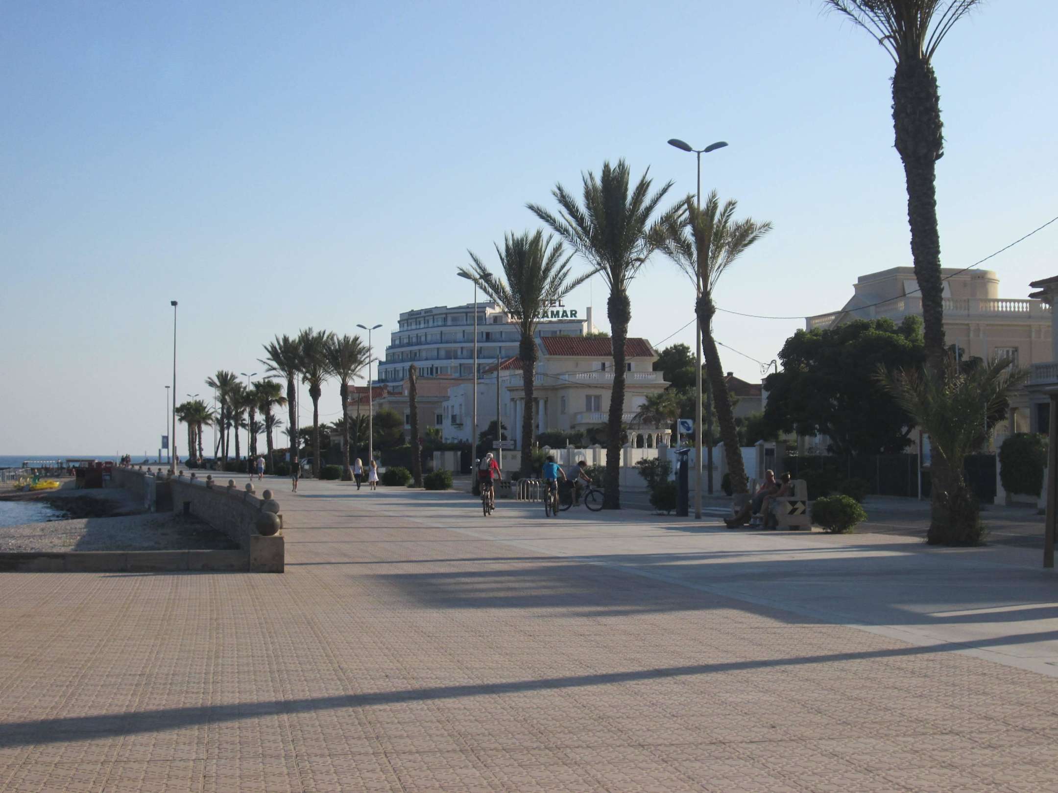 Strandpromenade mit Hotel im Hintergrund