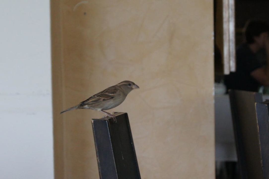 Vogel auf Restaurantstuhl